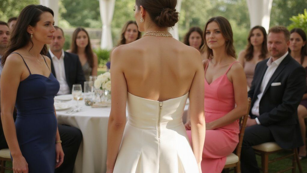 Cultural backgrounds also shape what’s considered respectful—red may be celebratory in some traditions but problematic in others. Modern etiquette has relaxed some rules, yet you’re still expected to consider the couple’s preferences, venue formality, and whether your outfit competes with the bridal party’s designated colors.