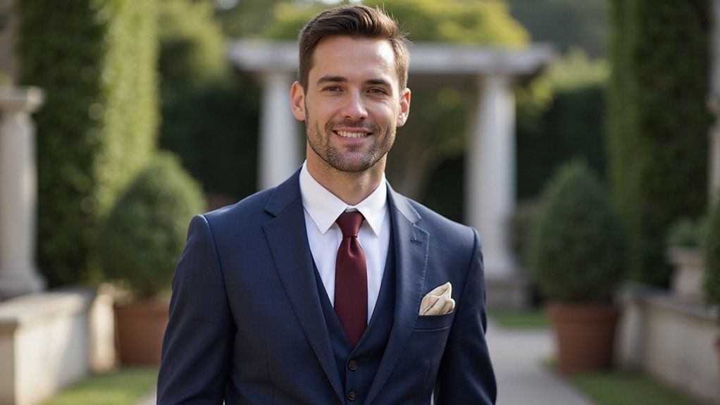 You’ll need to assemble four core categories of clothing to meet wedding standards: suits or tuxedos, dress shirts with ties, appropriate footwear, and refined accessories. Each category serves a specific function in achieving the formality level the invitation requires. Selecting the right combination from these essentials ensures you’re appropriately dressed within the venue’s timeline and dress code expectations.